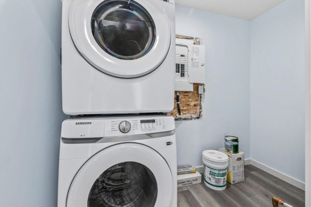 For added convenience, the suite includes in-suite laundry with a stacked Samsung washer and dryer, as well as a private entrance above the garage that ensures privacy and independence.